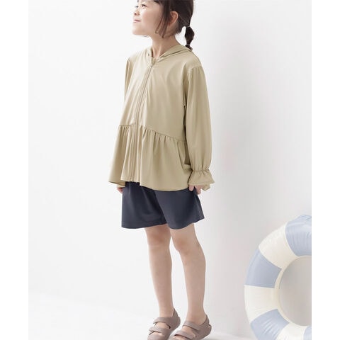 キッズ水陸両用ラッシュガードジップパーカー&ショートパンツ 【tu-hacci】 120cm グレージュ