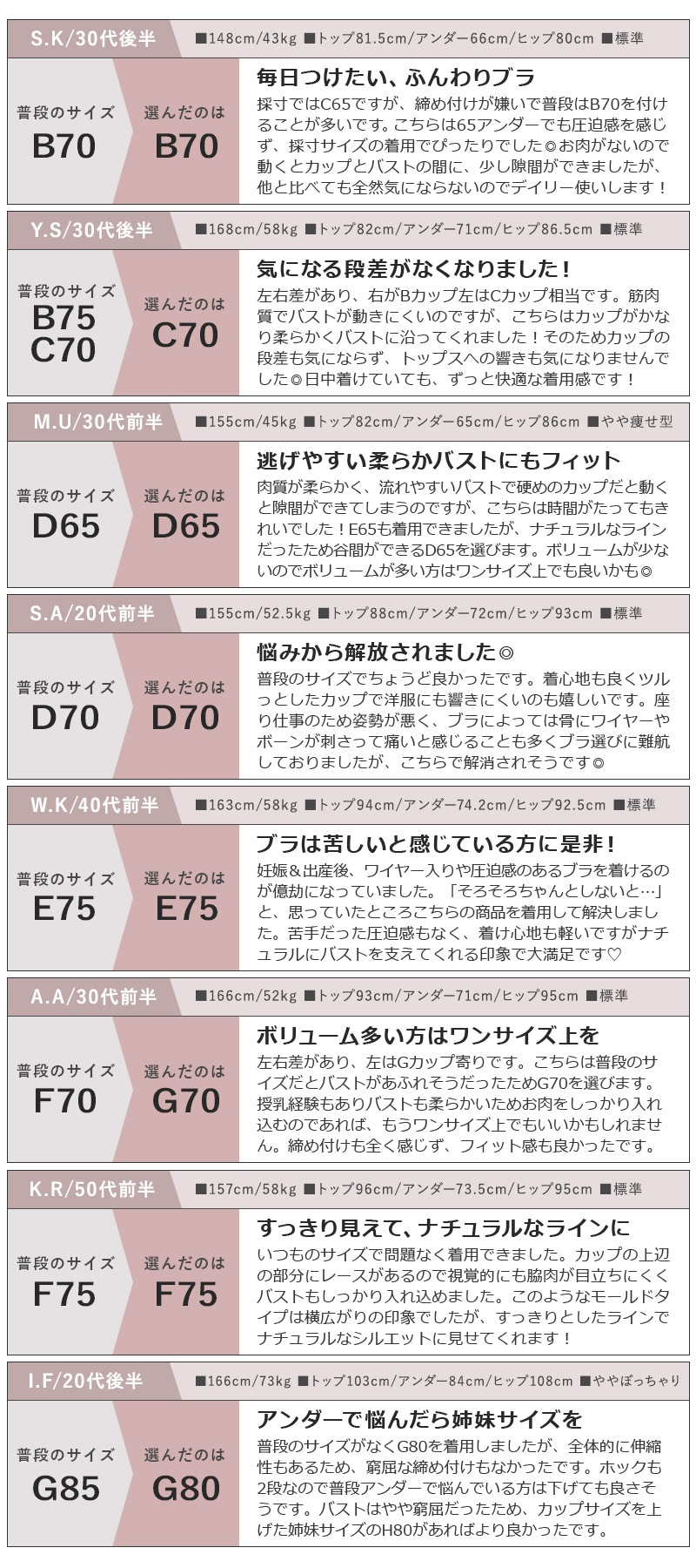 ストラップ取り外し:不可 ストラップ長さ調節:可 パッド:有(内蔵型) パッド取り外し:不可 ワイヤー:無 ホック:2段3列 |
