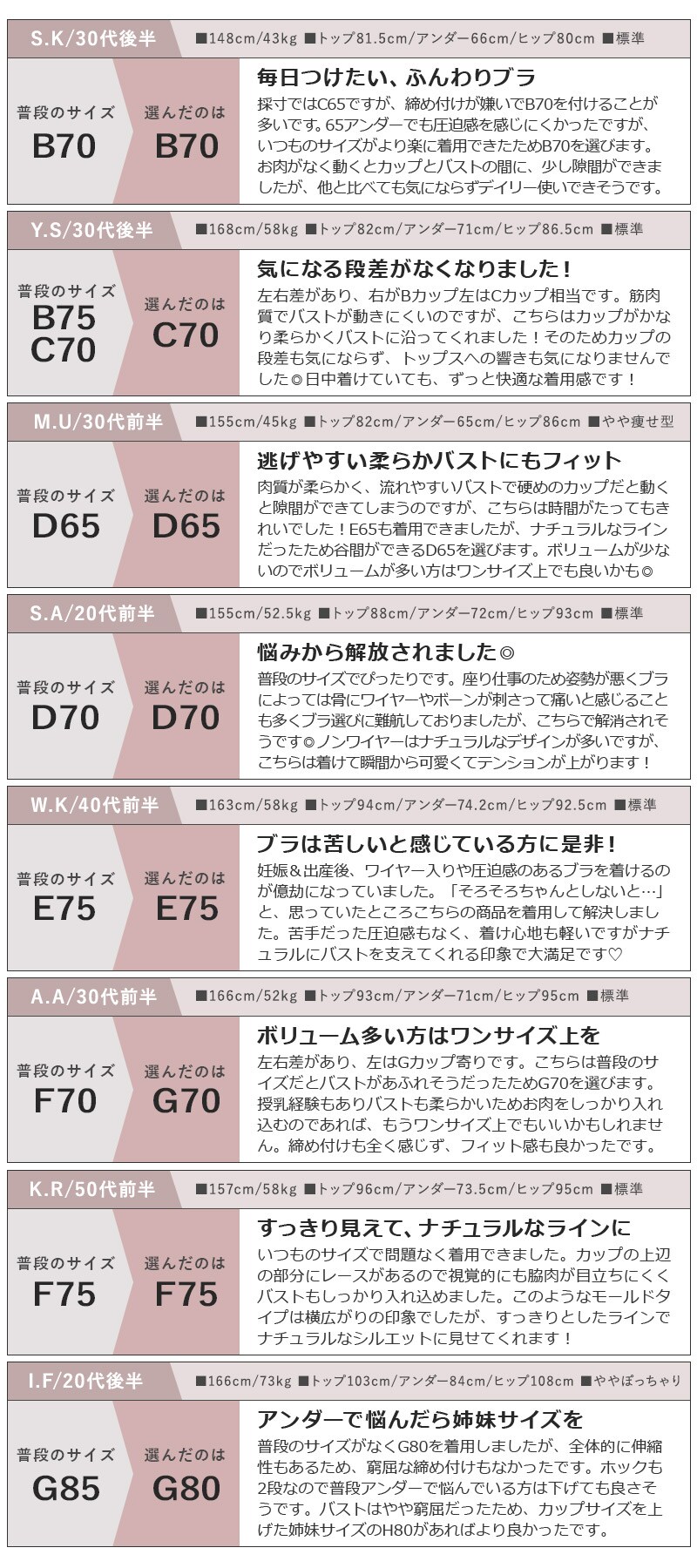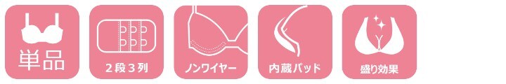 ストラップ取り外し:不可 ストラップ長さ調節:可 パッド:有(内蔵型) パッド取り外し:不可 ワイヤー:無 ホック:2段3列 |