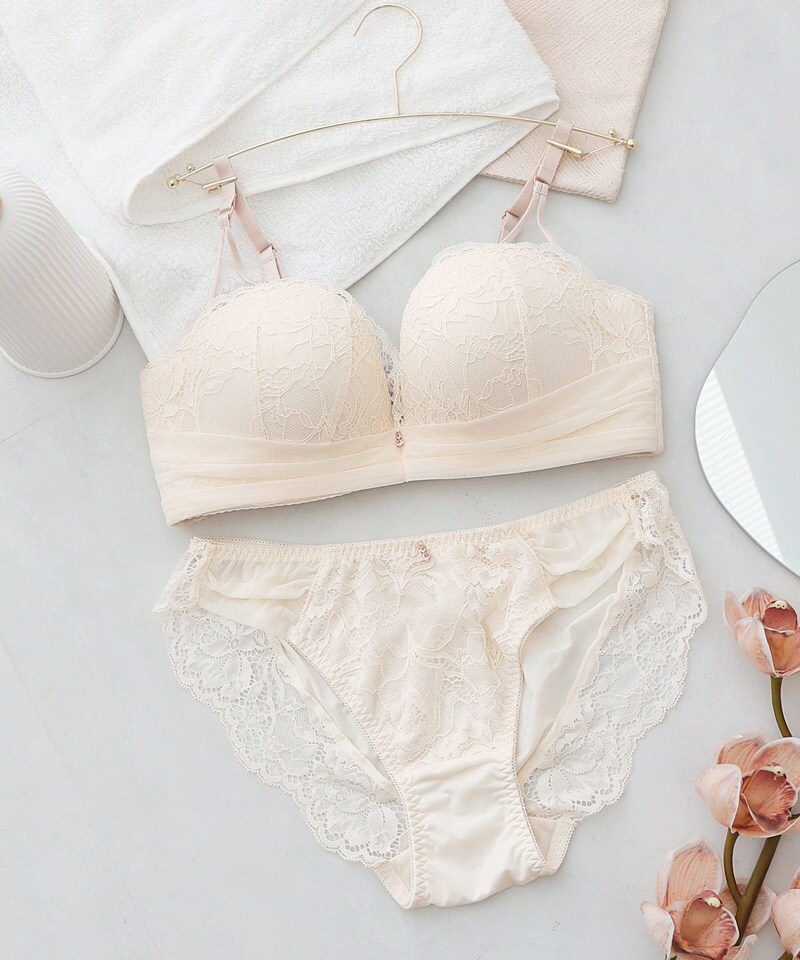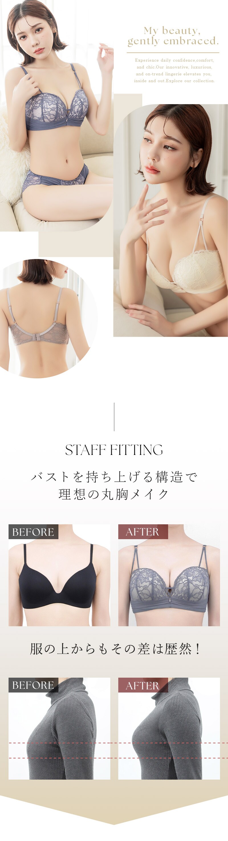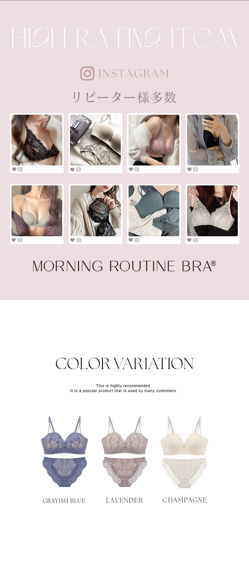 tu-hacci Bra&Shorts Collection ブラ&ショーツ / 計2点セット 「どんな朝も1番に触れるからこそ、窮屈じゃないものを選びたい。」 tu-hacciのノンワイヤーブラ"モーニングルーティンシリーズ”のWストラップタイプ。 女性の体はもっと自由に、美しくなれる。 1日を彩る、ご機嫌な朝をあなたに。 【こんな方におすすめ】 ・ノンワイヤーでも盛れるブラがほしい ・ワイヤーの窮屈感や痛いのが苦手 ・自然な丸胸に憧れる ・産後のそげ胸に悩んでいる ■「ノンワイヤー」だけど「盛りブラ」 ・Wストラップがしっかりとバストを持ち上げる ・下厚パッドがふっくらとしたハリのあるデコルテをメイク ・脇高設計でバストの横流れをしっかり防止 ・中央のキープゴムで長時間くっきり谷間 ■デザインにもこだわり ・アンダーにチュールのあしらい ・ピンクゴールドのパーツがアクセントに 可憐なフロントスタイルとレース下のヌーディな装いで女性らしさを引き立たせます。 お揃いデザインのフルバックショーツで全身を洗練された印象に。 |