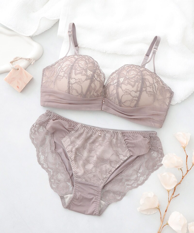 《モーニングルーティンブラ》ミスティフルールブラ&ショーツ【上下セット】【tu-hacci】 D80/ショーツL グレイッシュブルー