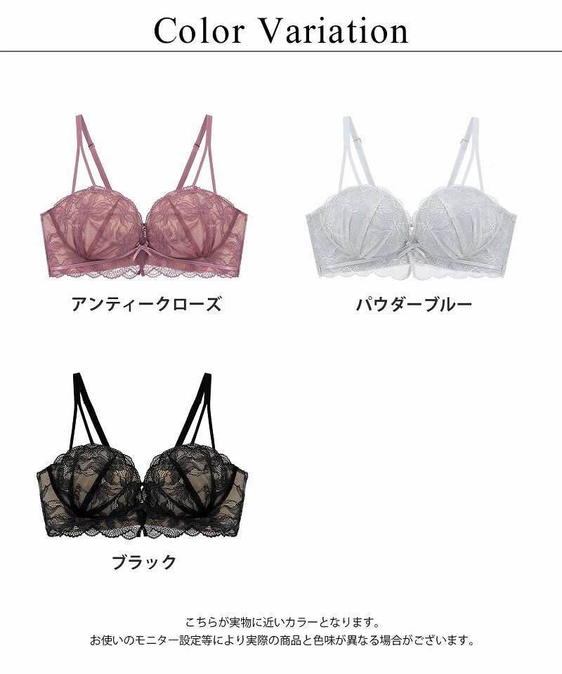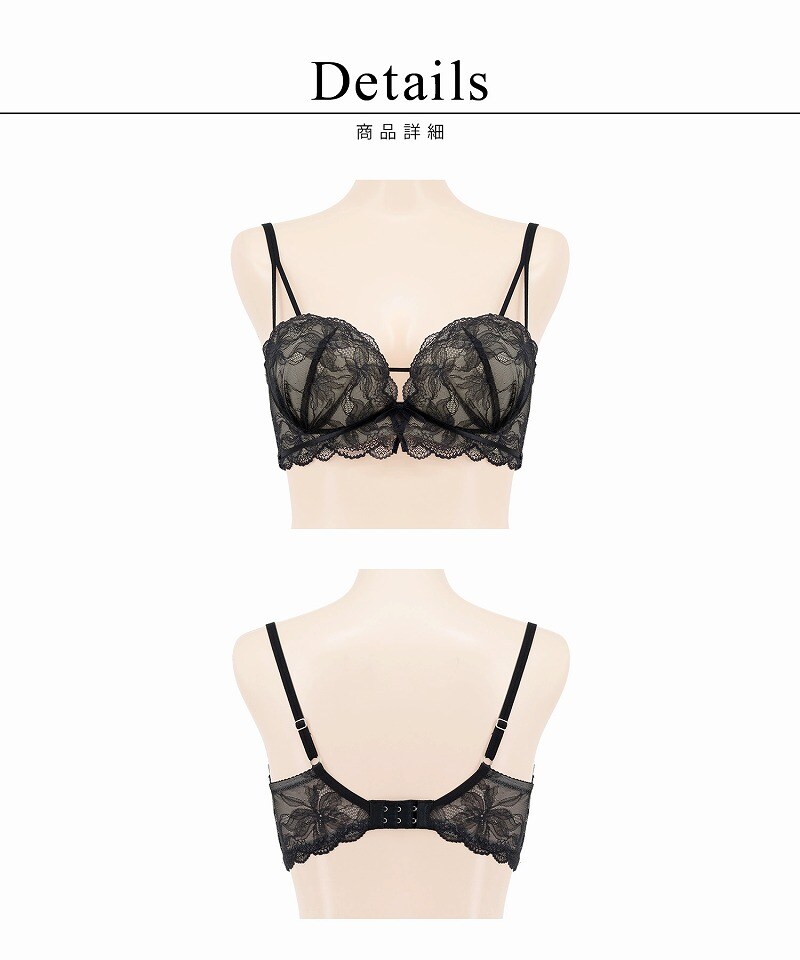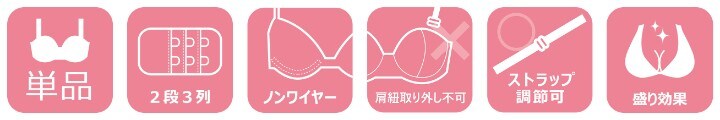 ストラップ取り外し:不可 ストラップ長さ調節:可 パッド:有(内蔵型) パッド取り外し:不可 ワイヤー:無し ホック:2段3列 透け感:無し |