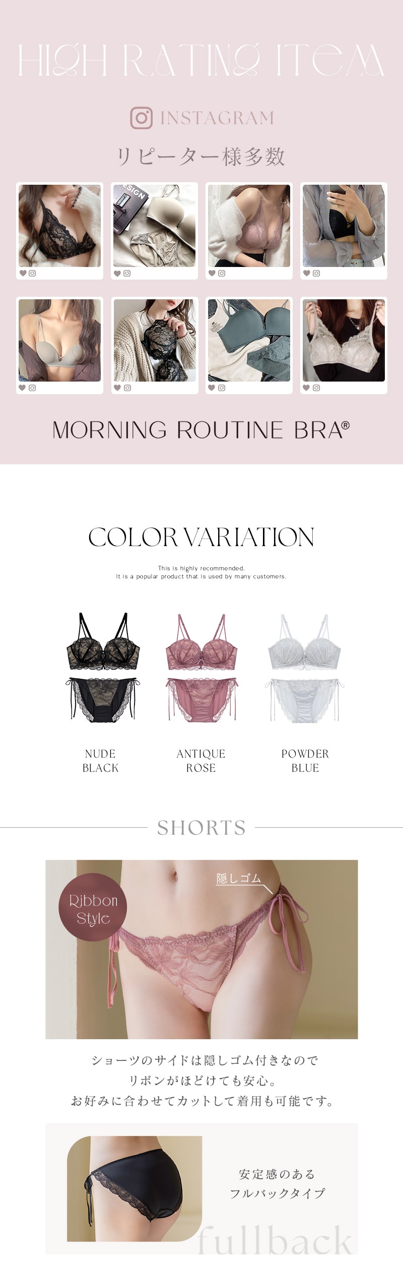 tu-hacci Bra&Shorts Collection ブラ&ショーツ / 計2点セット 「どんな朝も1番に触れるからこそ、窮屈じゃないものを選びたい。」 tu-hacciのノンワイヤーモールドブラ “モーニングルーティンブラシリーズ” 女性の体はもっと自由に、美しくなれる。 1日を彩る、ご機嫌な朝をあなたに。 繊細なフリージアレースでバストに輝きを添える エクラフルールブラ 【こんな方におすすめ】 ・ノンワイヤーでも盛れるブラがほしい ・ワイヤーの窮屈感や痛いのが苦手 ・自然な丸胸に憧れる ・産後のそげ胸に悩んでいる ■「ノンワイヤー」だけど「盛りブラ」 ・Wストラップがしっかりとバストを持ち上げる ・下厚パッドがふっくらとしたハリのあるデコルテをメイク ・脇高設計でバストの横流れをしっかり防止 ・中央のキープゴムで長時間くっきり谷間 ■こだわりのデザイン ・アンダーにレースとリボンをあしらい、上品さの中にフェミニンさをプラス ■ショーツは自信を高める紐パン仕様 サイドの紐が解けても、ゴムがあるからズレずに安心。 ゴムをカットして、手結び仕様にすることも可能です。 日常使いにも特別な日にも。魅力と自信を高める一着です。 |