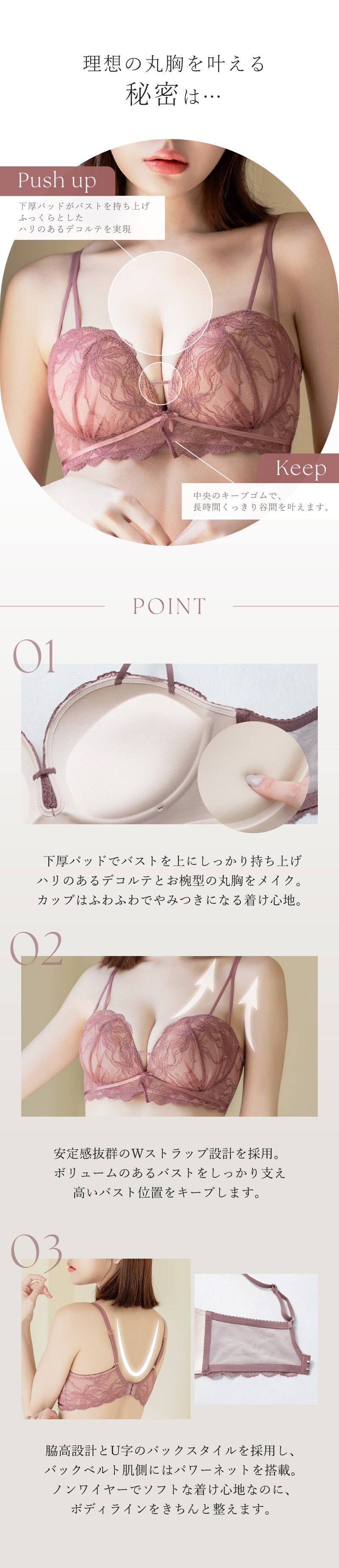 ストラップ取り外し:不可 ストラップ長さ調節:可 パッド:有(内蔵型) パッド取り外し:不可 ワイヤー:無し ホック:2段3列 透け感:無し |