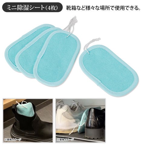 さらにクローゼットなどに繰り返し使える「除湿シート」に、靴箱など様々な場所で使用できる「ミニ除湿シート(4枚)」をセットにしました。
