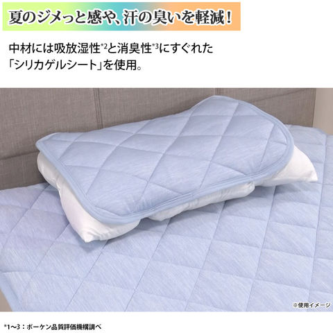 中材には吸放湿性(*2)と消臭性(*3)にすぐれた「シリカゲルシート」を使用。夏のジメっと感や、汗の臭いを軽減。