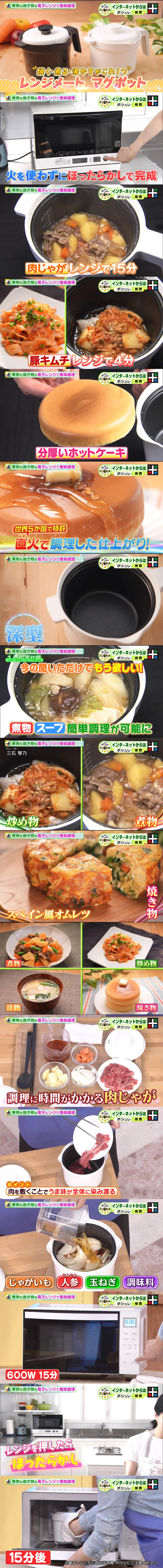 普段フライパンや鍋を使っていた炒め物や煮込み料理も、「レンジメート マグポット」を使えば手軽に電子レンジで料理が完成