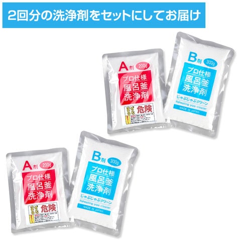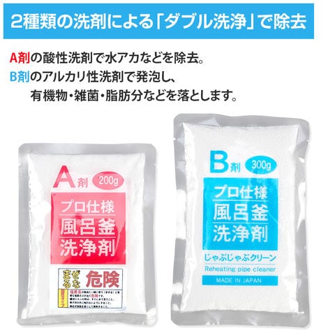 追いだきの配管にたまっている汚れが“じゃぶじゃぶ”出てくる、プロ仕様の風呂釜洗浄剤。