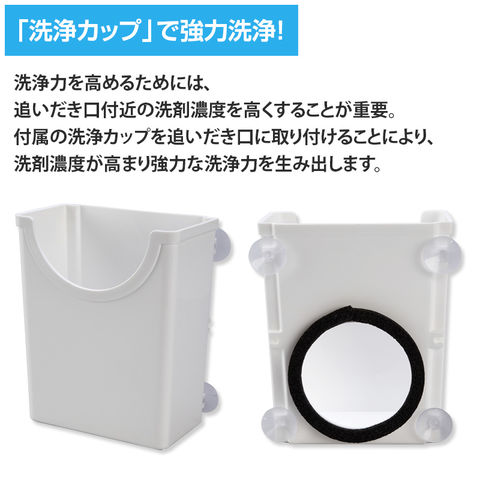 付属の洗浄カップを追いだき口に取り付けることにより、洗剤濃度が高まり強力な洗浄力を生み出します。