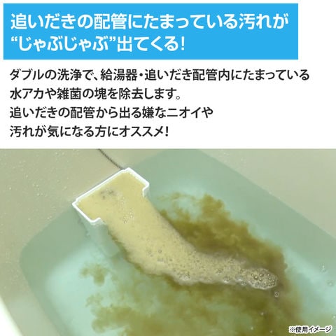このダブルの洗浄で、給湯器・追いだき配管内にたまっている水アカや雑菌の塊を除去します。