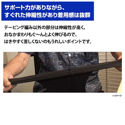 腰まわりをサポートするテーピング編みにより、骨盤まわりを支え、安定感を生み出します。