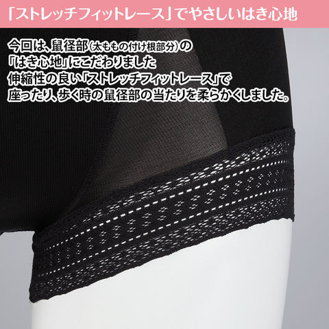 特に鼠径部(太ももの付け根部分)に伸縮性のいい「ストレッチフィットレース」を使用することで「はき心地」がさらに向上するよう設計されています。