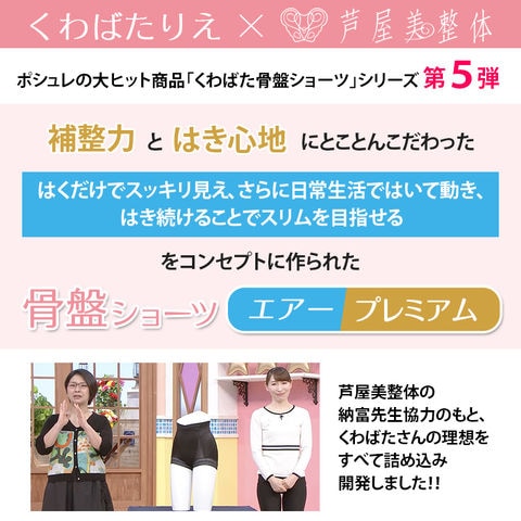 「はくだけでスッキリ見え、さらに日常生活ではいて動き、はき続けることでスリムを目指せる」をコンセプトに作られた「くわばたりえ×芦屋美整体 骨盤ショーツ エアー プレミアム」。