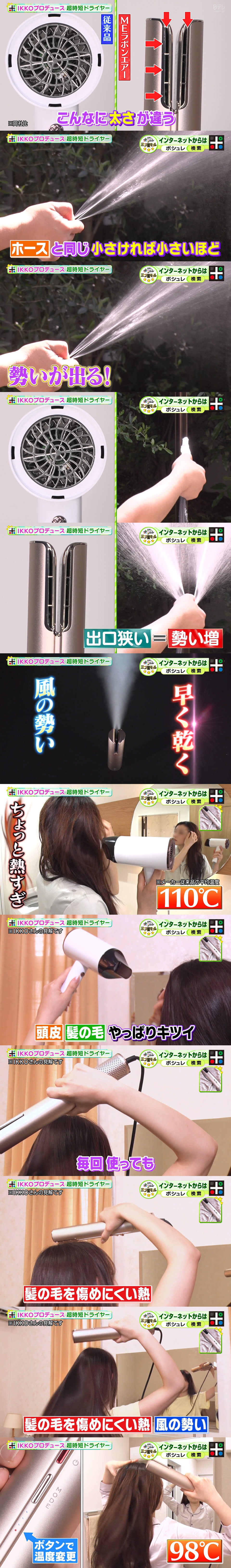 ダブルのパワフルな風と、IKKOさんこだわりの温度設定により、頭皮と髪をいたわりながらドライ。