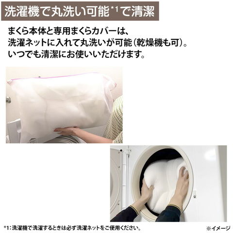 まくら本体と専用まくらカバーは、洗濯ネットに入れて丸洗いが可能(乾燥機も可)。