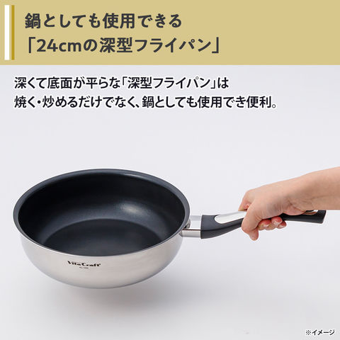 また、深くて底面が平らな「深型フライパン」は焼く・炒めるだけでなく、鍋としても使用でき便利。