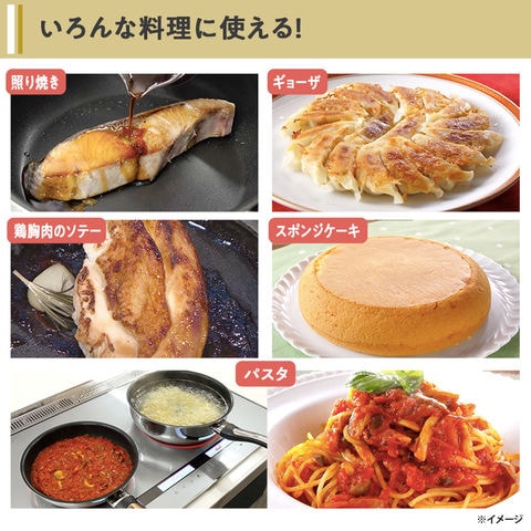 これ1つで「焼く」「炒める」「煮る」「茹(ゆ)でる」「蒸す」「炊く」の6役をこなせるため、和・洋・中さまざまな料理に幅広く活用できます。