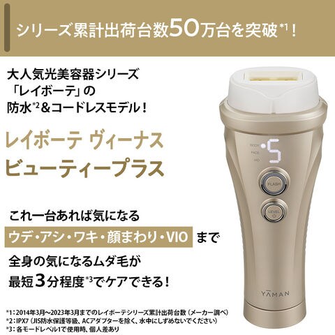 シリーズ累計50万台を突破(*1)した、大人気光美容器シリーズ、「レイボーテ」の防水(*2)&コードレスモデル「レイボーテ ヴィーナス ビューティープラス」。