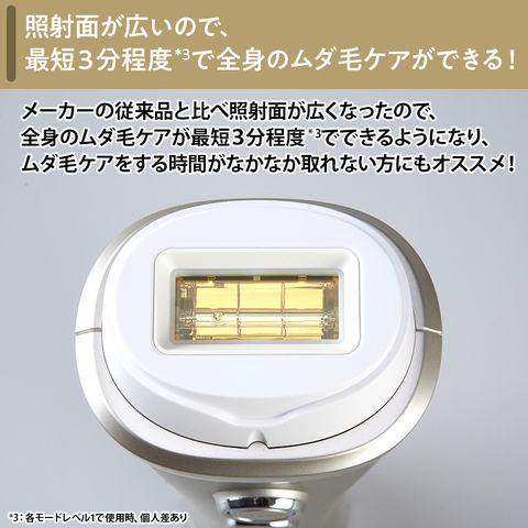 さらに、メーカーの従来品と比べ照射面が広くなったので、全身のムダ毛ケアが最短3分程度(*3)でできるようになり、ムダ毛ケアをする時間がなかなか取れない方にもオススメです。