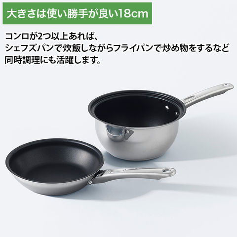 コンロが2つ以上あれば、シェフズパンで炊飯しながらフライパンで炒め物をするなど同時調理にも活躍します。