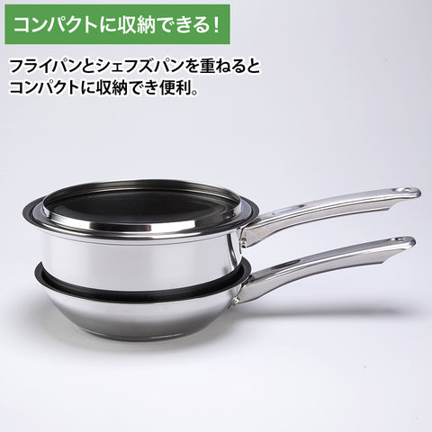 フライパンとシェフズパンを重ねるとコンパクトに収納でき便利です。