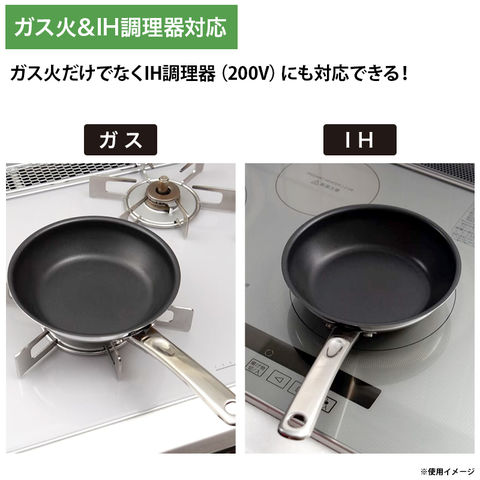 ガス火だけでなくIH調理器(200V)にも対応でき、オーブンやオーブントースターでの調理(260℃まで、ガラス蓋は不可)も可能。