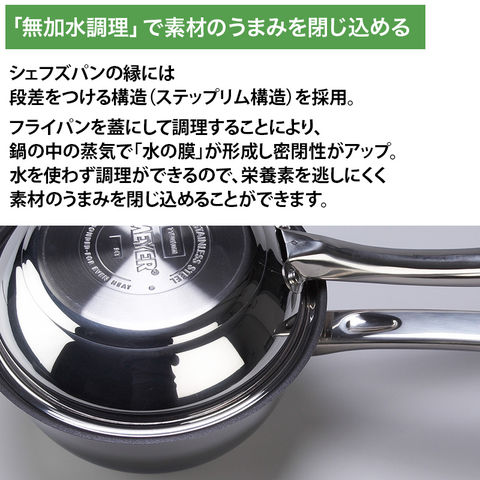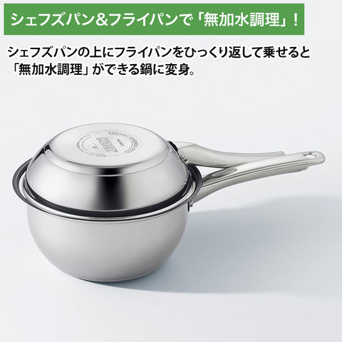 シェフズパンの上にフライパンをひっくり返して乗せると「無加水調理」ができる鍋に変身。