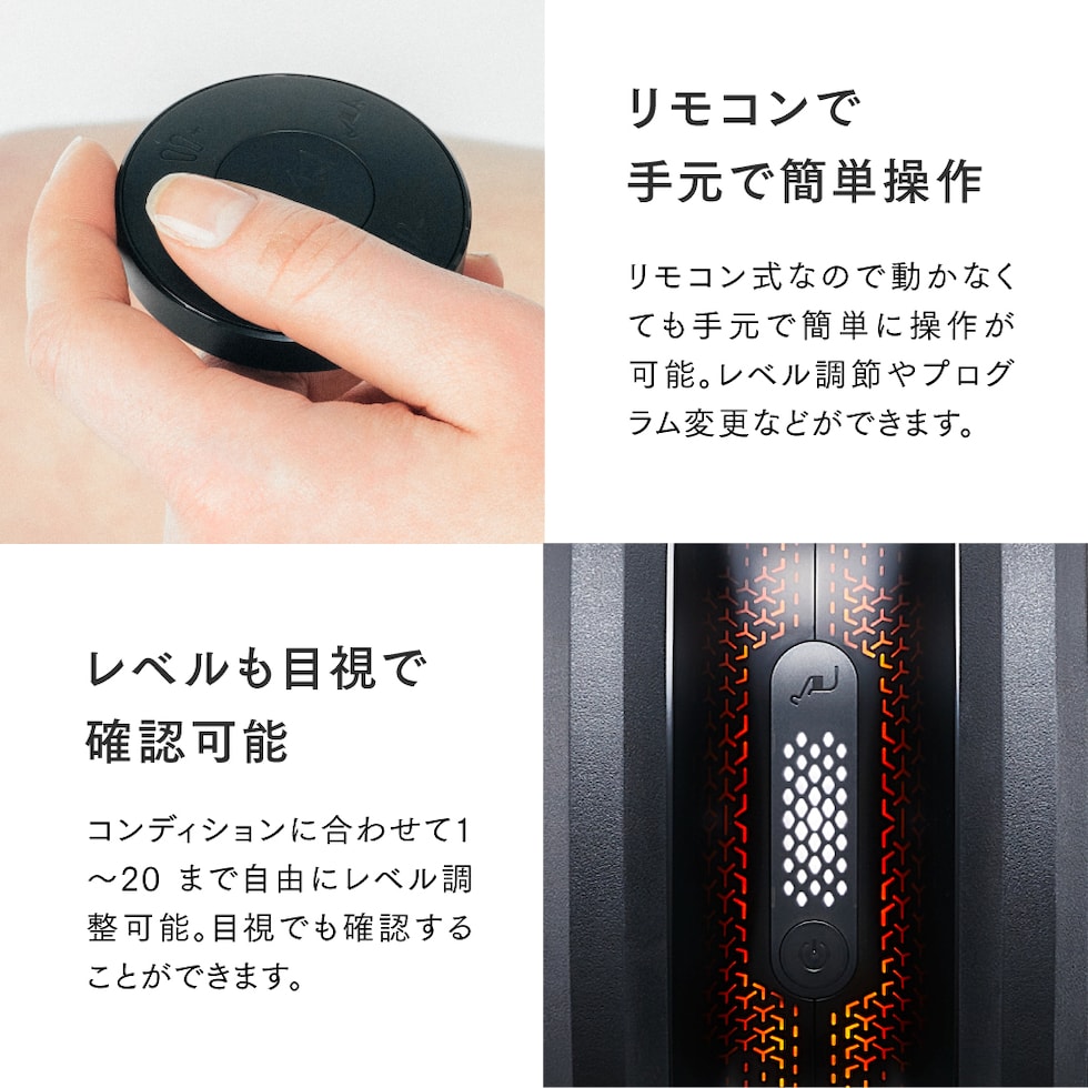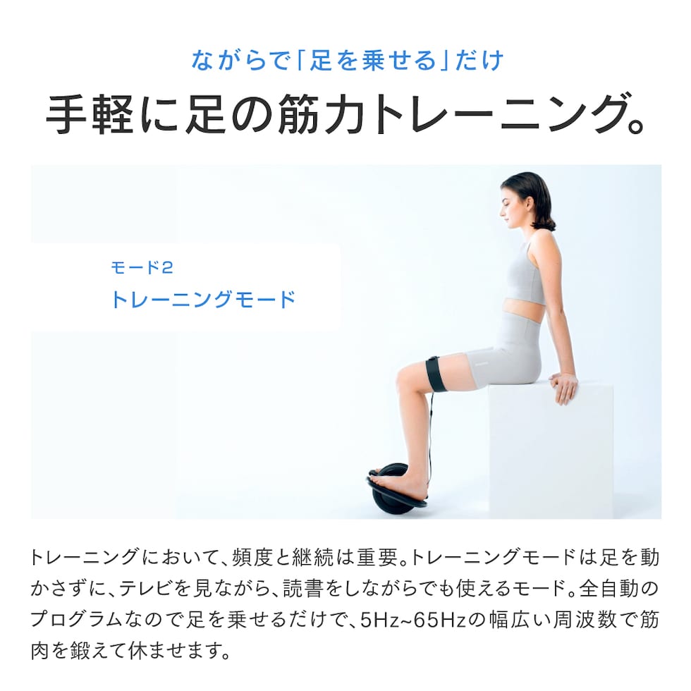 | ●セット内容 | 本体 ×1台 本体用乾電池(単3形) ×3本 レッグベルト ×1セット レッグベルト保管用シート ×2枚 レッグベルト用コード ×1本 リモコン ×1個 リモコン用電池(CR2032) ×2個(うち1個は予備) 取扱説明書 ×1部 |