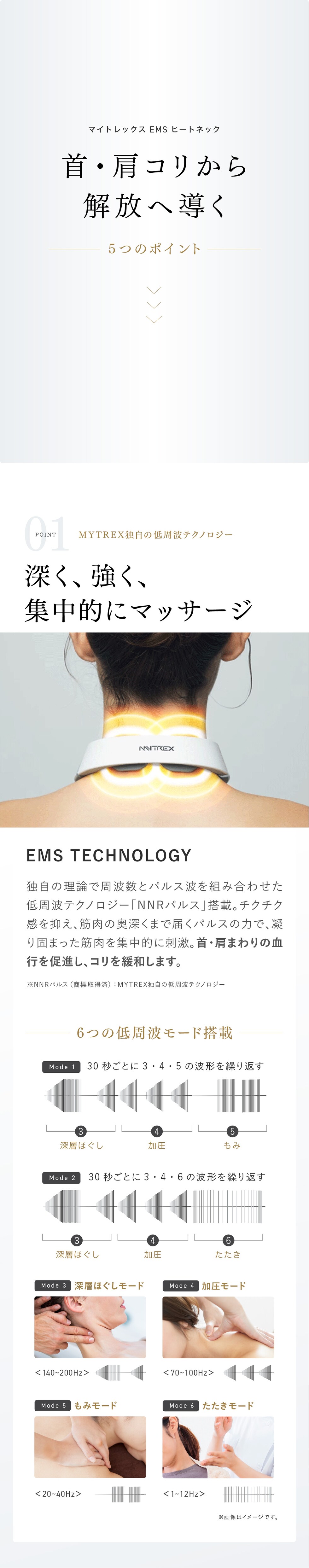 肩こり 首 ネックマッサージ器【MYTREX公式】EMS HEAT NECK 首まわり360°ケア※でコリ改善!医療認証済 リニューアル 低周波治療器 温熱 首こり ネックマッサージャー 温感ながらケア
