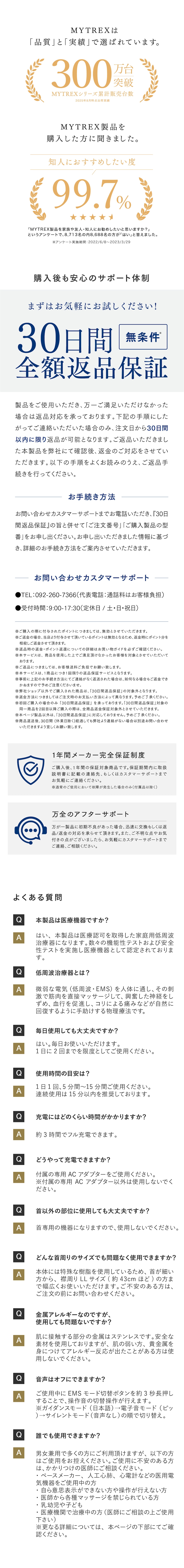 ※医療機器認証済みの本格的な"マッサージ機器"のため、"マッサージ"の代用(一般家庭で使用すること)として、効果の表示が認められています。