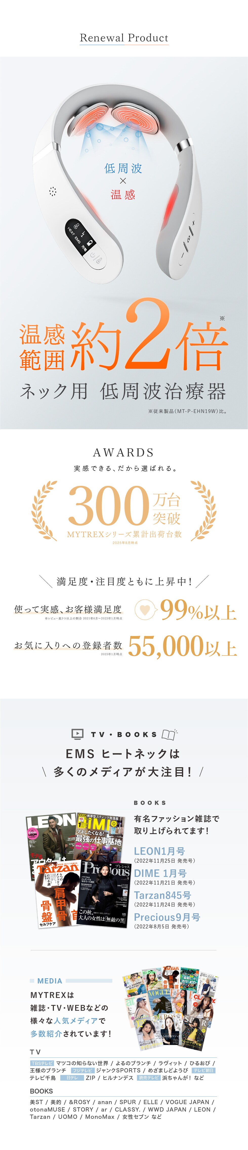 さまざまなTV・雑誌・SNSで話題沸騰中の ネック専用 低周波治療器『 MYTREX EMS HEAT NECK 』!!