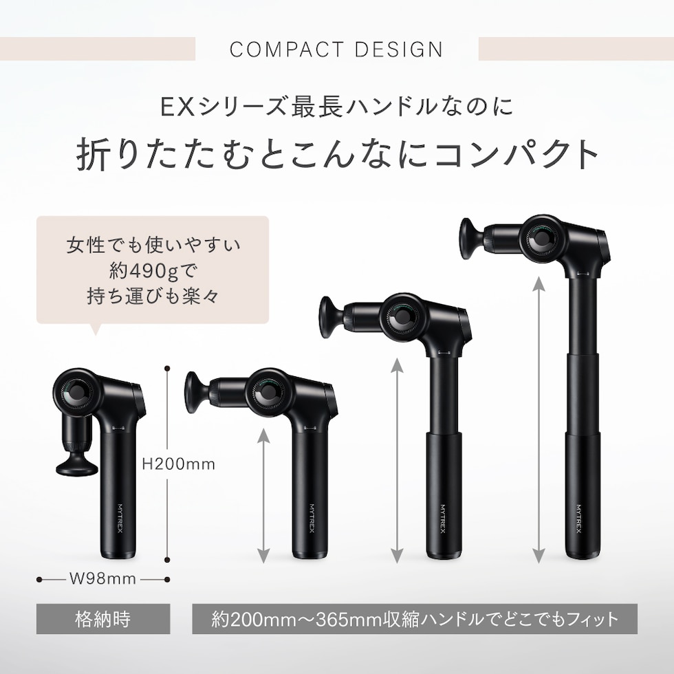 【ブラック】マッサージガン REBIVE EX FIT 筋膜リリース 首 肩 腰 背中 肩甲骨 コリ 伸縮 ハンディガン マッサージガン 筋肉 ほぐし ストレッチ 健康グッズ リラックス 全身ケア MYTREX マイトレックス リバイブ 小松菜奈