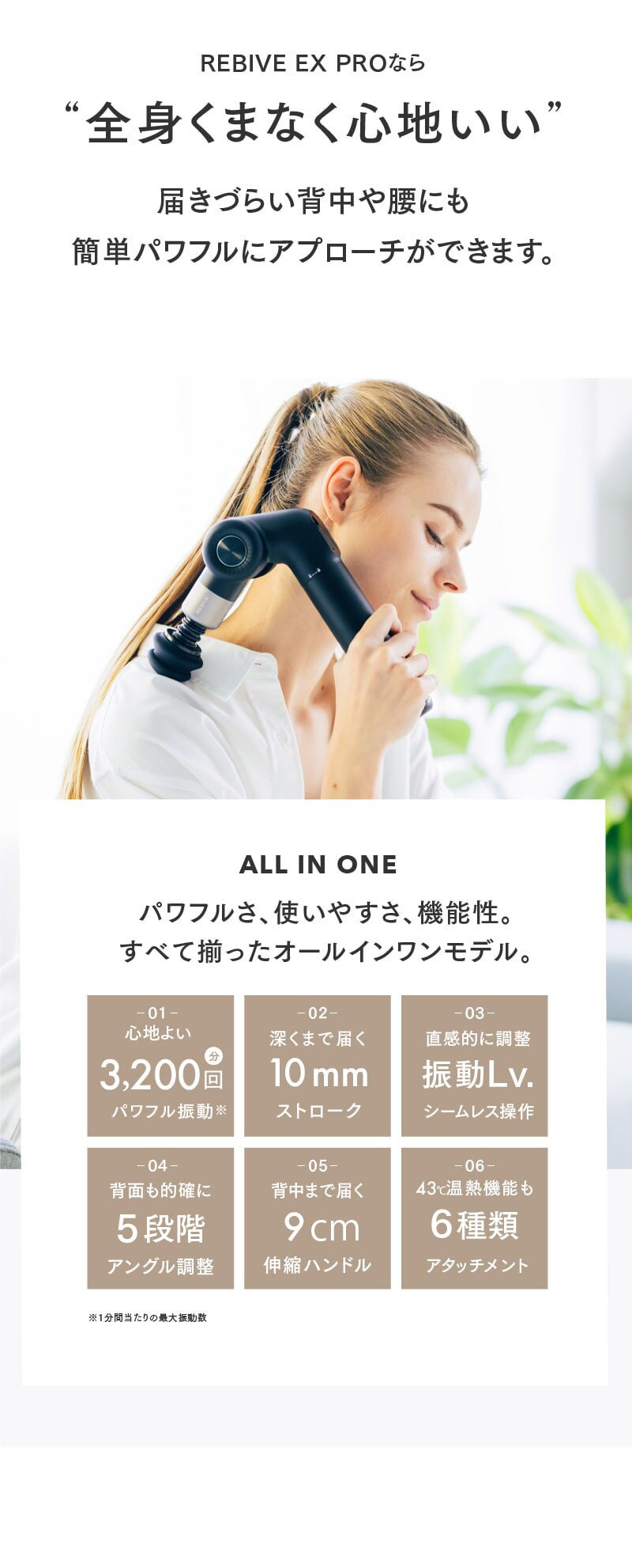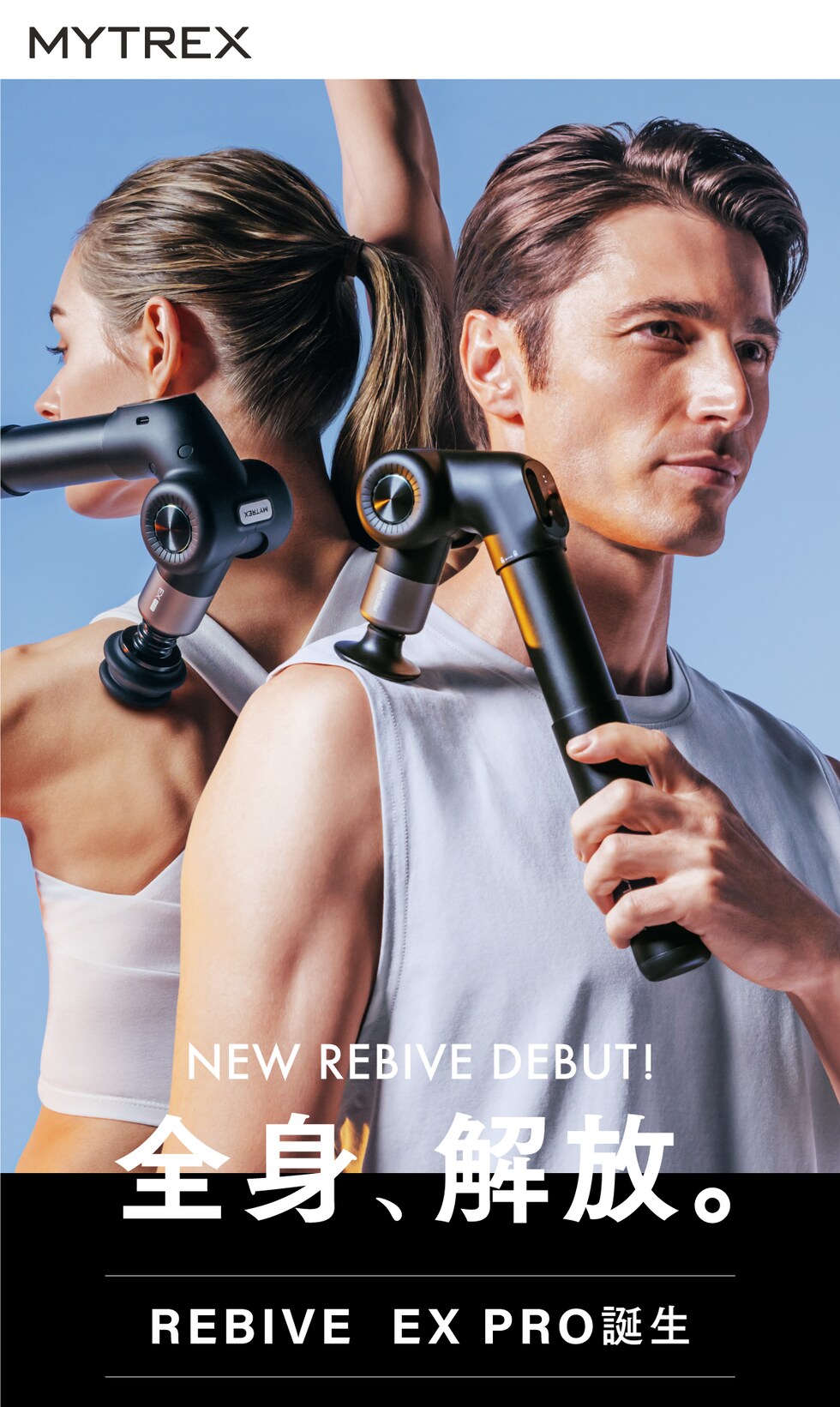 プロフェッショナルケア REBIVE EX PRO 筋膜リリース 首 肩 腰 背中 肩甲骨 コリ 強力 電動 ハンディガン マッサージ 筋肉 ほぐし ストレッチ 健康グッズ リラックス 男女兼 MYTREX マイトレックス リバイブ ギフト プレゼント 敬老の日