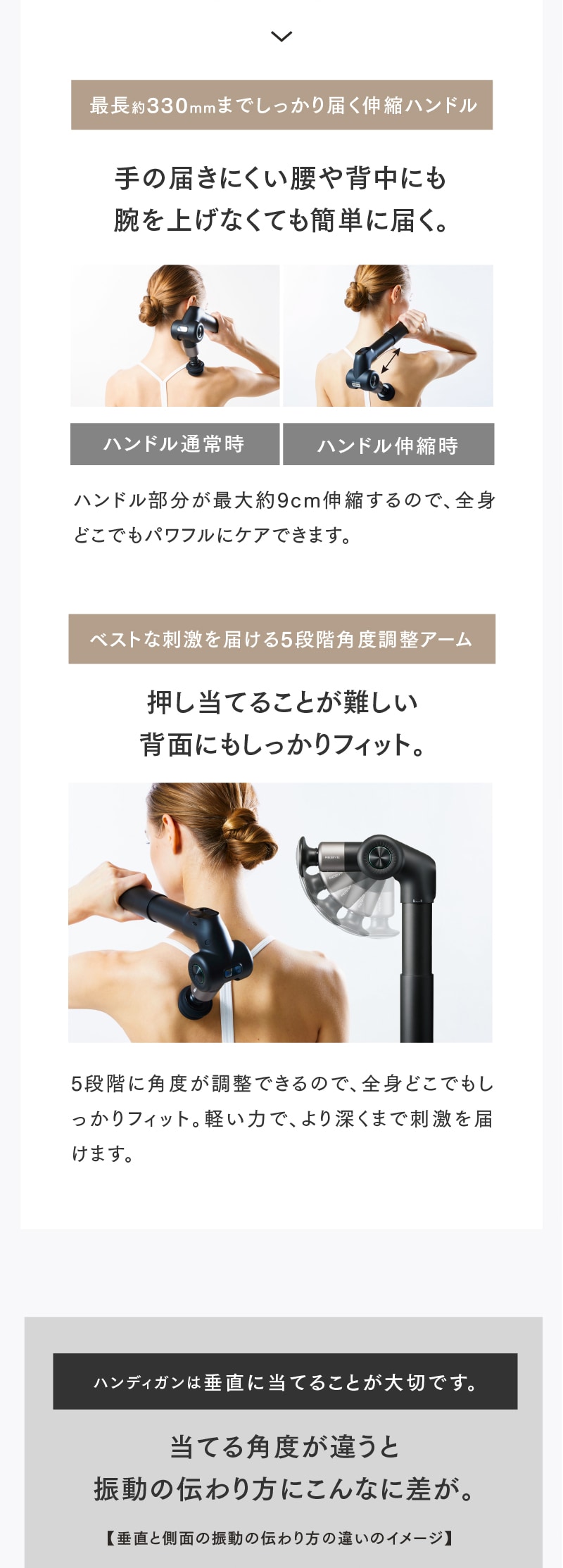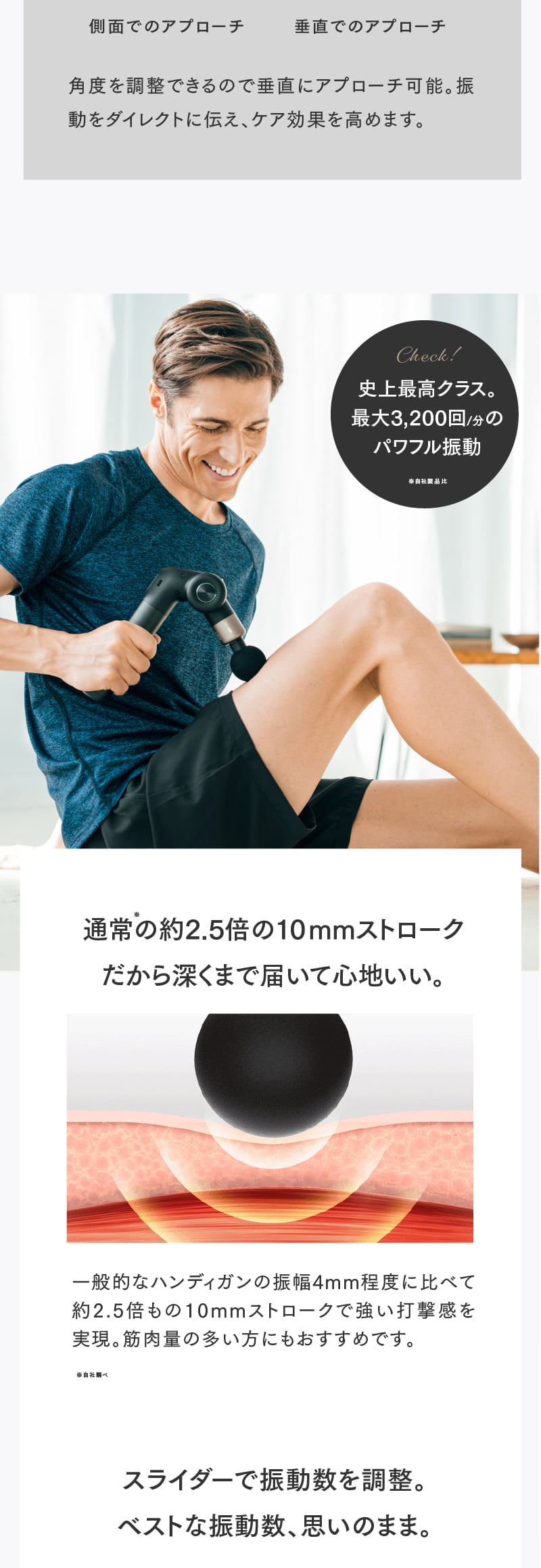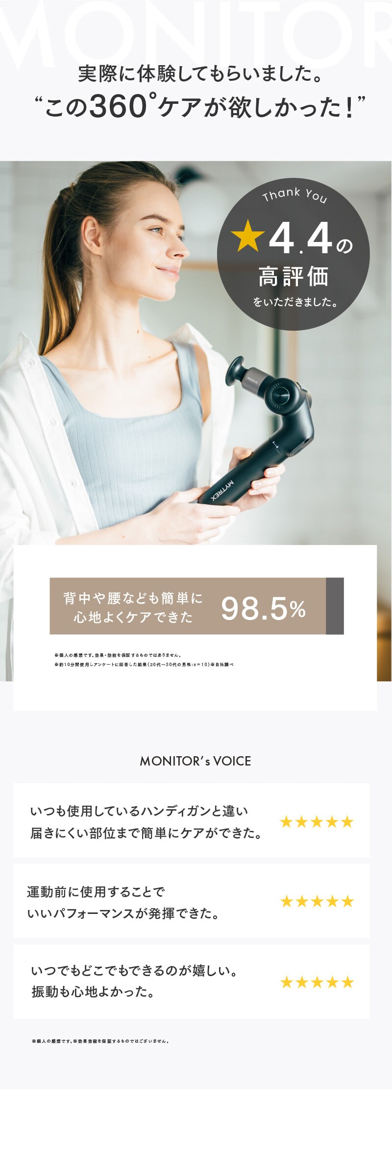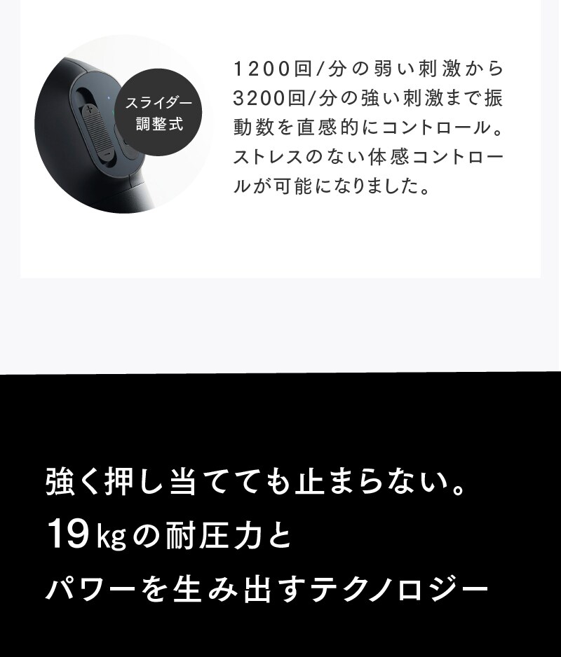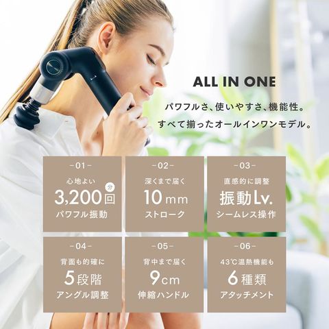 | ●素材 | 本体:PC-GF20、ABS樹脂、アルミニウム合金、アクリル、ステンレス、シリコンアタッチメント:ABS樹脂、シリコン、(温熱アタッチメントのみ次を含む:アルミニウム) |