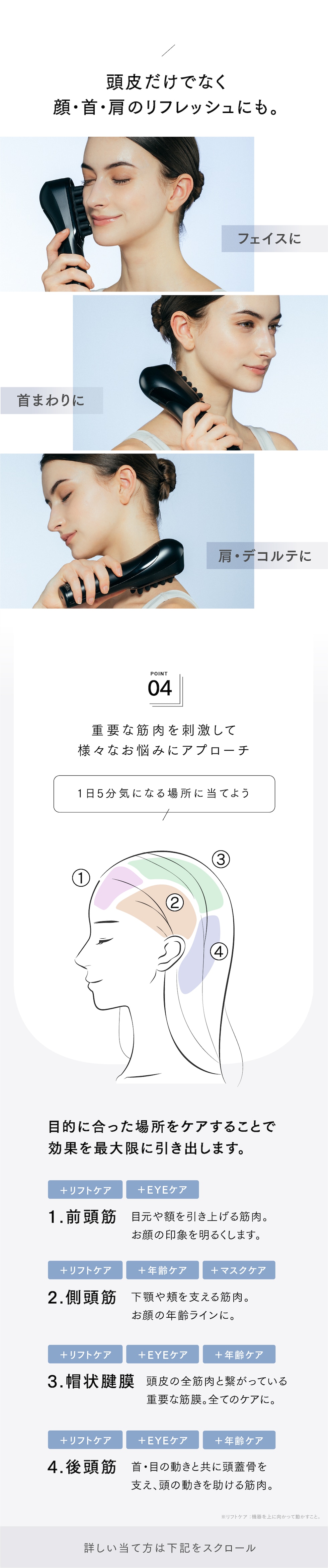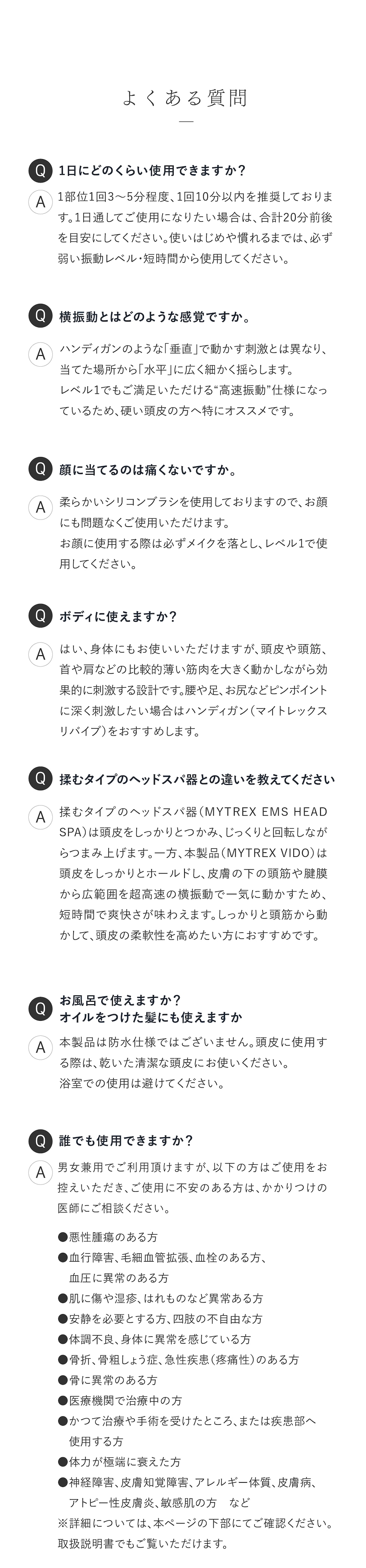 ●整形手術をした部位●美容医療手術直後●刺青(タトゥー)周辺 ●皮膚炎・過度の日焼けなど、皮膚に異常がある場合およびその部位 ●にきび・傷・湿疹・腫れもの・化膿性疾患のある場合およびその部位 ●かゆみやほてりのある部位 ●膨らんだほくろ・ウイルス性のイボ●のどぼとけ ●鼻・耳・唇 ●眼球・まぶた・目のまわり・首の前方●心臓付近