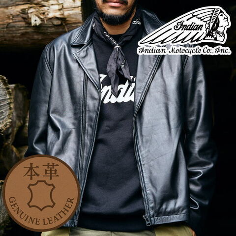 Indian Motocycle ライダースジャケット メンズ レディース ブランド IL-02H65 7986536 インディアンモトサイクル ダブル 本革 羊革 シープスキン レザー(M,ブラック)