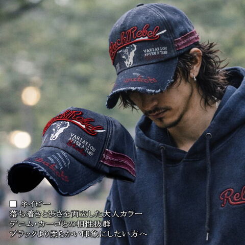 【当店限定/大きいサイズ】BlackRebel 帽子 キャップ メンズ レディース 大きいサイズ 7986564 深め Vintage クラッシュ 加工 こなれ感 おしゃれ(ONESIZE,ネイビー)