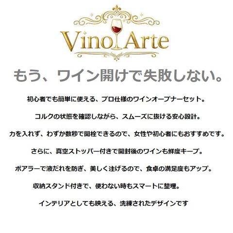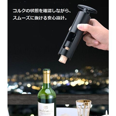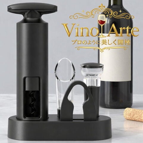 ワインオープナー VinoArte コルク抜き オープナー ワイン 7986568 ボトルオープナー 栓抜き おしゃれ コルク抜き オープナーワイン 簡単(ONESIZE,ブラック)