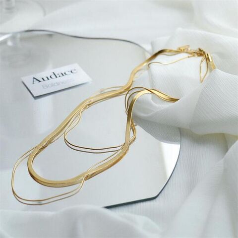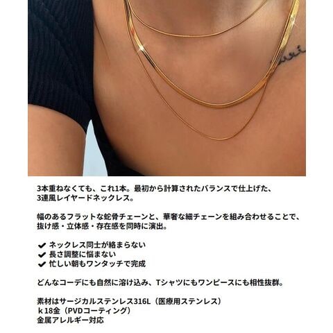 蛇骨 ネックレス 3連 レディース NEKA 7986574 サージカルステンレス316L K18金 PVDコーティング アクセサリー おしゃれ 金アレ対応 シンプル(ONESIZE,ゴールド)