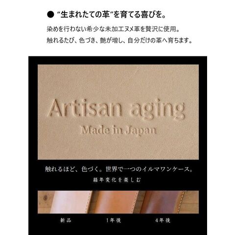 | 【新型 アイコス イルマ i ワン 対応】日本製 本革レザー アイコスイルマワンケース 本革 レザー 新型 ILUMA Artisan aging 保護ケース AA-020 iqosイルマワン イルマワンカバー 経年変化 総革 ヌメ革 おしゃれ iqos iluma one IQOSイルマワン レザー 保護カバー アイコスケース Made in Japan ■特徴 ブランド名【Artisan aging】 匠は英語でArtisanを意味します。 経年変化は英語でagingを意味します。 日本の職人によって丁寧に作られた匠の技。 お客様が使用する事によって経年変化され世界のオンリーワン商品が出来上がる。 様々な理由からあまり皆様の手元には届かない、「作りたてのヌメ革製品」(栃木レザー等になる素材)をお届け致します。 その商品をお客様に使ってもらい、傷や変色を楽しんでもらう、というのがコンセプトになります。 当社では、長年、本革製品をつくり続ける中で蓄積された技術と経験を生かし、一つ一つ心を込めた「ものづくり」を行っています。 自然が生み出した温かみある革と、革職人の温かみある手づくりとが融合した革製品をお楽しみください。 ※ヌメ革とは? ヌメ革とは植物系の渋に含まれる成分のタンニンで鞣した皮革の総称です。 一番の特徴はその丈夫さです。素材自体は固めで、光を浴びたり、素手で触ることで油脂がつくことにより変色します。使用上の傷や変色自体もヌメ革の風合いとして魅力が増す経年変化素材です。牛の傷やシワ・血管や毛穴の痕などの自然な表情、革本来の香り、温かな手触りを持つ、古くから皮革の代表格です。植物のタンニンのみで、なめされている為、自然に優しく廃棄後も土にかえることができる、シンプルですが素晴らしい素材と言えます。 当社が扱う【ヌメ革】は更に染色加工を施されておらず。染色による廃水もないスーパーエコロジー。まさに生まれたての本革と云う位置づけとなります。 ※染色なしのヌメ革があまり市場に出回らない理由 ナチュラルな淡色の為。生産中の汚れが発生する為。メーカー保管の際の色変化の恐れ。濃色に染める事で。。本当は汚れているが、それをごまかす為。 染色なしのヌメ革があまり市場に出回らない理由には様々ありますが、当社は作りたてのヌメ革製品(栃木レザー等になる素材)をお届け致します。その商品をお客様に使ってもらい、傷や変色を是非楽しんでもらえれば幸いです。 ※ご留意事項 ヌメ革はその特質の為、他の皮革に比べて繊維の目が詰まっているため非常に頑丈です。荒っぽい扱いをしても革自体が大きく損傷することはありません。しっかりとケアをしていれば数十年単位で使い続けることが可能です。但し、ヌメ革は表面加工がされていませんので、表面の傷はつきやすいです。何かでちょっと擦るだけで簡単に傷がついてしまいます。その点ご了承いただければと思いますが、その傷さえ味に見えてしまう、愛着を感じる革なのです。 ※ヌメ革のお手入れ ヌメ革は表面に加工が施されていないため、水濡れなどによるシミがつきやすいのが特徴です。使い込んでいくと手の油脂や革から出る油により自然の保護膜ができますが、まっさらな状態のヌメ革はやや汚れやすいので、購入した後、革専用クリームを塗ると、汚れがつきにくくなります。水シミもクリームの油分により付きづらくなります。また神経質な方は防水スプレーによる保護も併せると効果的です。しかし、ヌメ革は傷やシミなどが味となっていくため、神経質にならず大胆に使う方が、ヌメ革としての味が出てくるかと思います。 良質な分厚いヌメ革を使用した本革長財布。財布本体が、カーブを描いているので、握りやすく手に収まりやすいデザインです。 日本国内の職人の手で丁寧に仕立てられているので、安心・高品質なのはもちろん、日本が世界に誇る“MADE IN JAPAN”を肌で感じることができる逸品財布に仕上がっています。 ■仕様 本革/本体×1 真鍮/ナスカン×1 本革/ハンドベルト×1 ■カラー ナチュラル 染め加工無し ※カラーは各々のモニターにより、多少の違いがある事、ご了承下さいませ。 ■サイズ cm イルマワン 新型イルマ i ワンにも対応 ■素材 牛/ヌメ革 [商品ご購入時のご注意] 天然皮革を使用する製品のほとんどが、天然皮革ならではの風合いを生かして作られているため、 特性上、表面にキズ・色ムラ・シワがある場合がございます。これらは自然で生まれたものだからこそ味わえる、天然皮革の証です。 生前についた傷やシワなどを残した仕上げの革はエイジングを起こしやすく、時とともに美しい風合いへと変化します。 特性上、革の表面にはキズ・色ムラ・シワなどがございますが、良品となりますので予めご了承ください。 |