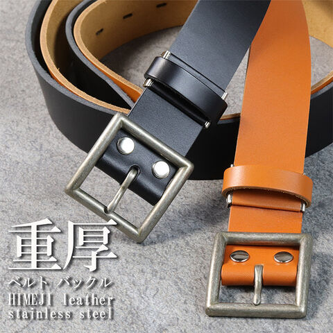 【日本製/重厚/姫路レザー】日本製 ベルト メンズ 本革 ヌメ革 姫路レザー ステンレススチール製バックル 7986591 高耐久バックル ビジネス カジュアル(ONESIZE,ブラック)