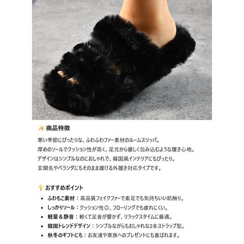 【もふもふ感】サンダル ファーサンダル スリッパ ふわもこ レディース 室内外兼用A 7986614 あったか 韓国風ファッション おしゃれ 秋冬 送料無料(40-41(25.0~25.5cm),ブラック)