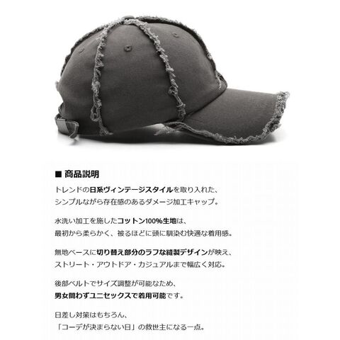 | 【ダメージ加工/こなれ感】帽子 キャップ メンズ レディース Vintage無地 おしゃれ クラッシュ加工 コットン100% ユニセックス ■特徴 トレンドの日系ヴィンテージスタイルを取り入れた、 シンプルながら存在感のあるダメージ加工キャップ。 水洗い加工を施したコットン100%生地は、 最初から柔らかく、被るほどに頭に馴染む快適な着用感。 無地ベースに切り替え部分のラフな縫製デザインが映え、 ストリート・アウトドア・カジュアルまで幅広く対応。 後部ベルトでサイズ調整が可能なため、 男女問わずユニセックスで着用可能です。 日差し対策はもちろん、 「コーデが決まらない日」の救世主になる一点。 ■カラー ブラック グレー ブラウン ベージュ ※カラーは各々のモニターにより、多少の違いがある事、ご了承下さいませ。 ■サイズ cm 後部ベルト調整 頭回り 57.0cm~60.0cm つばの長さ 7.0cm ■素材 コットン100% ■注意点 ※メーカーの製造ロット差で多少 デザインが変更になる場合があります。 ※海外輸入の商品になりますので多少の汚れ、傷がある場合があります。 #日系ファッション #ヴィンテージキャップ #ダメージ加工 #コットンキャップ #ユニセックス帽子 #大人カジュアル #アウトドアコーデ #シンプルコーデ #紫外線対策 |