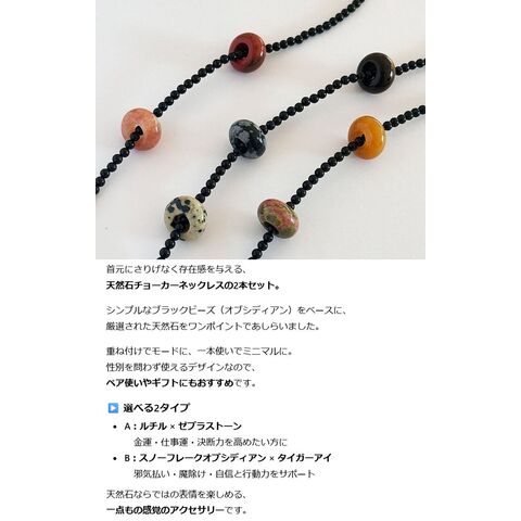 【お得な2本セット】天然石 チョーカー ネックレス 45cm パワーストーン レディース NEKH 7986642 メンズ ルチルクォーツ オブシディアン アクセサリー(ONESIZE,B)