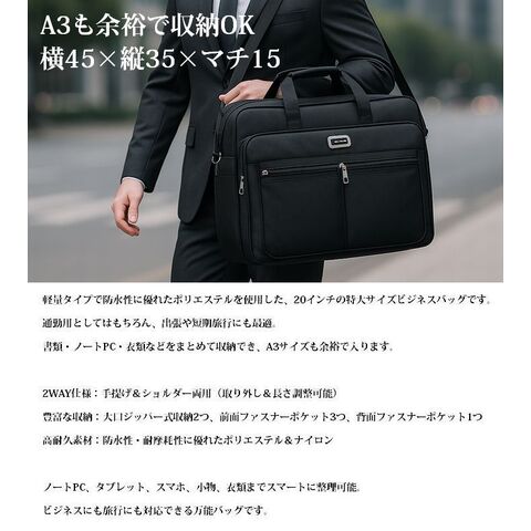 【特大 A3対応 軽量】2WAY ビジネスバッグ ブリーフケース メンズ 20インチ 鞄 7986650 バッグ 通勤 ポケット多 書類カバン 送料無料(ONESIZE,A-ブラック)