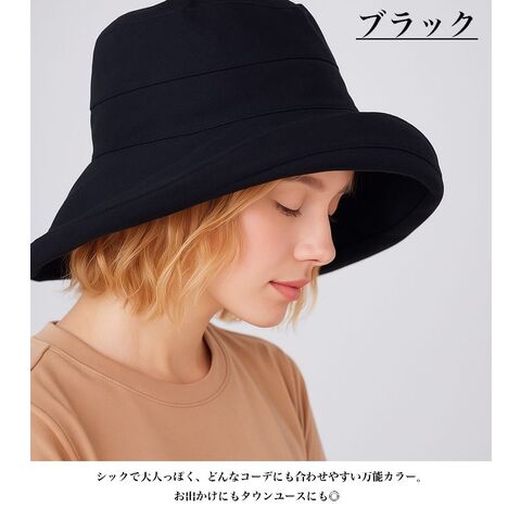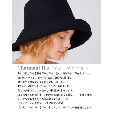 シャルマンハット ハット 帽子 レディース 遮光 UVカット NEKA 7986652 つば広 折りたたみ 涼しい かぶる日傘 オシャレ 無地(ONESIZE,ブラック)