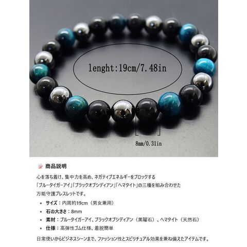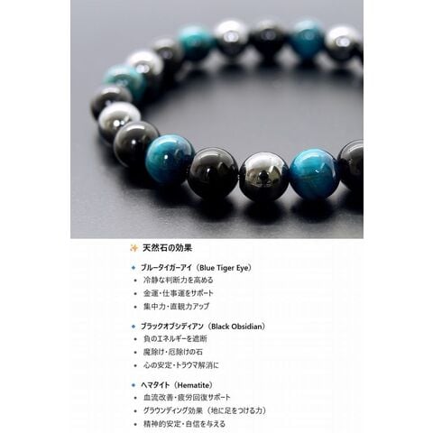 パワーストーン ブレスレット ブルータイガーアイ ブラックオブシディアン NEK 7986660 黒曜石 ヘマタイト メンズ レディース バングル 天然石(ONESIZE,ワンカラー)
