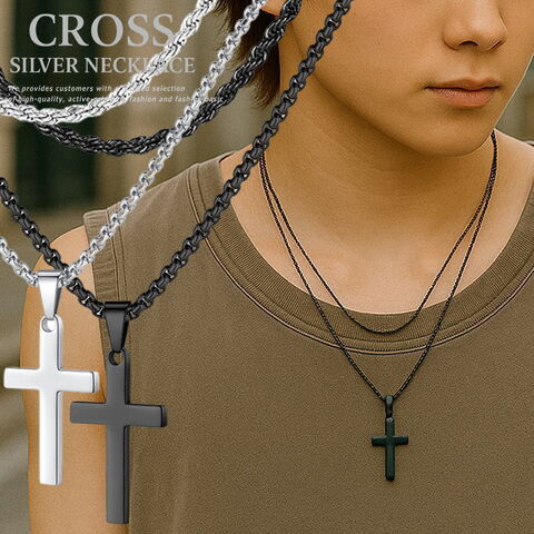 クロス ネックレス メンズ レディース NEK 7986670 ダブルチェーン仕様 十字架 2連 アクセサリー シンプル おしゃれ(ONESIZE,ブラック)