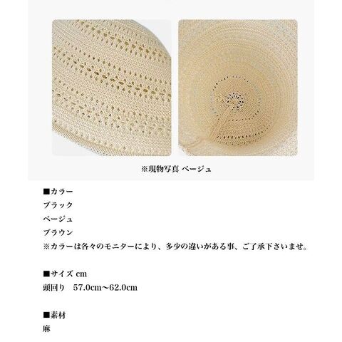 【クロシェ編み】バケットハット ハット 帽子 レディース 麻素材 ジュート NEK 7986681 おしゃれ 無地 シンプル リゾート 夏のUV対策 送料無料(ONESIZE,ブラウン)