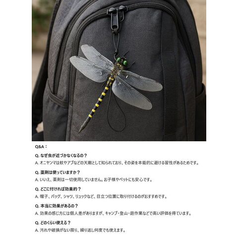 オニヤンマ 虫除け 虫よけ用品 ストラップ NEK 7986683 クリップ 安全ピン ブローチ フィギュア ゴルフ キャンプ 草刈り 山登り 防虫対策(オニヤンマ,3個)